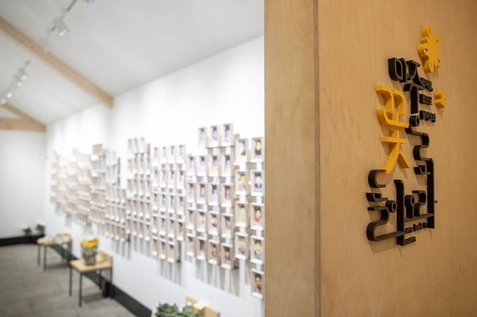 세월호 참사 7주기인 16일 오전 서울 종로구 광화문광장 세월호 기억공간에 희생자들의 영정사진이 걸려 있다.