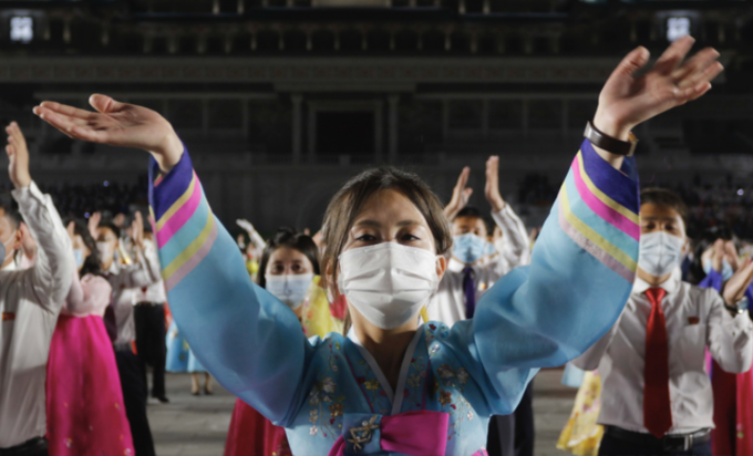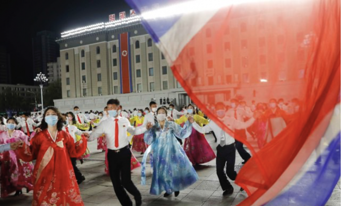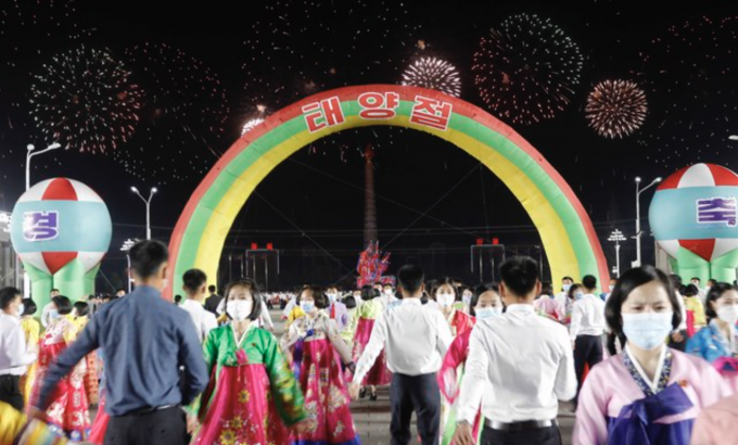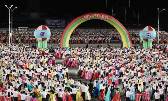 김일성 전 주석의 생일인 '태양절'을 맞아 15일 평양의 김일성 광장에서 기념 야회와 불꽃놀이 행사가 열리고 있다. [AP 뉴시스]
