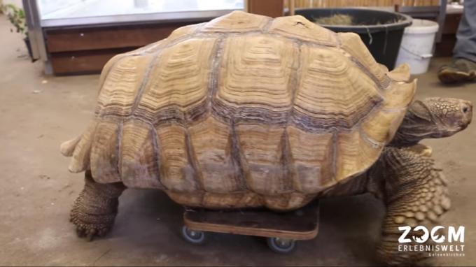 17일 미국 UPI통신에 따르면 독일의 줌 에르레브니스 벨트 겔젠키르켄(ZOOM Erlebnis welt Gelsenkirchen) 동물원의 23살 아프리카 거북이가 관절 문제때문에 롤러 보드를 타고 스스로 돌아다니고 있다고 보도했다.