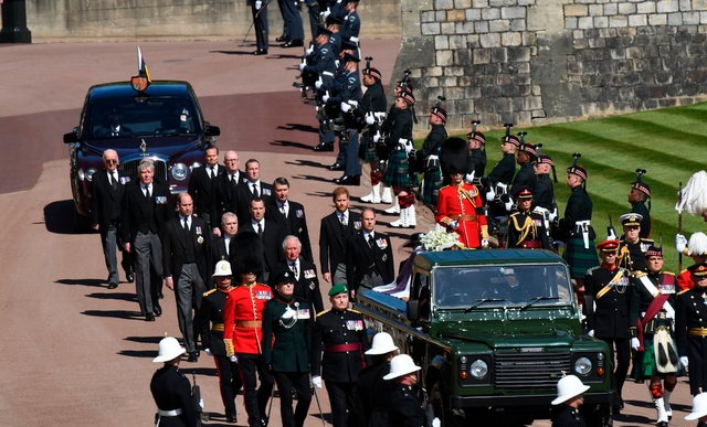 이날 오후 3시에 거행된 장례식은 BBC 등 현지 언론을 통해 영국 전역에 생중계됐다. 장례식에는 여왕과 자녀 등 직계가족과 가까운 친척 30명만 참석했다. 코로나19에 따른 방역 지침에 따라 장례 규모를 크게 줄였다.
