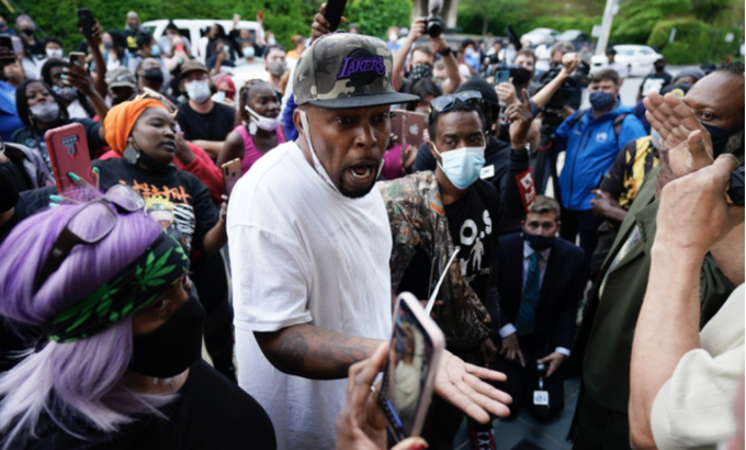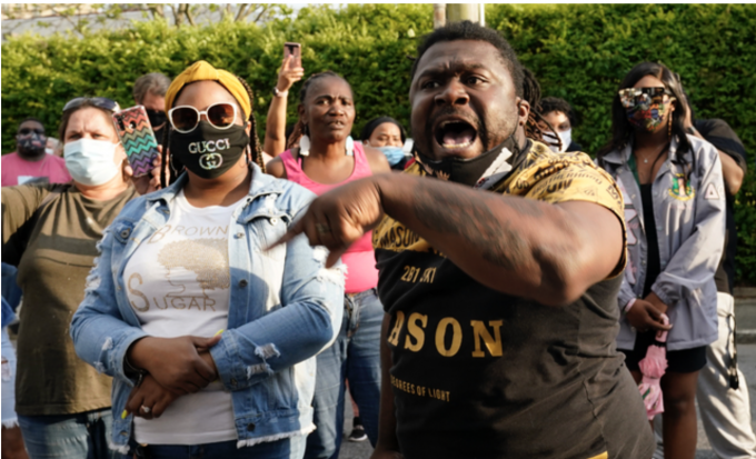 흑인 남성이 또 경찰 총격에 사망했다. 이와 관련 21일(현지시간) 미 노스캐롤라이나주 엘리자베스시티에서 시민들이 항의 시위를 벌이고 있다. 패스쿼탱크 카운티 부보안관은 수색 영장을 집행하던 중 흑인 남성에게 총을 쏴 숨지게 했다. [AP 뉴시스]