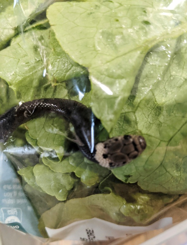 파충류 전문가 게리 패틴슨은 양배추 포장 속에서 개구리가 발견되는 일은 어쩌다 있지만 뱀이 발견된 것은 처음이라고 말했다.