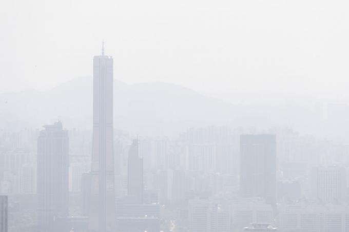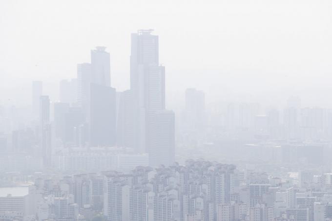 고비사막에서 발원한 황사의 영향으로 전국 대부분 지역의 미세먼지가 '나쁨 ' 수준을 보인 29일 서울 남산서울타워에서 바라본 도심. 이날 기상청은 일부 지역에 황사비가 내릴 수 있다고 예보했다.