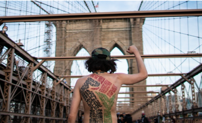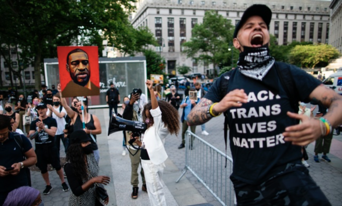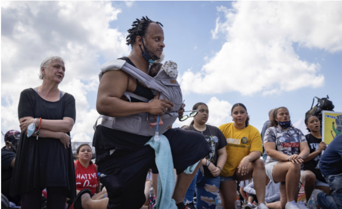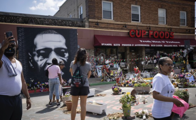 조지 플로이드 사망 1주기인 25일(현지시간) 미국 미네소타주 미니애폴리스 조지 플로이드 광장에서 시민들이 추모하고 있다. [AP 뉴시스]