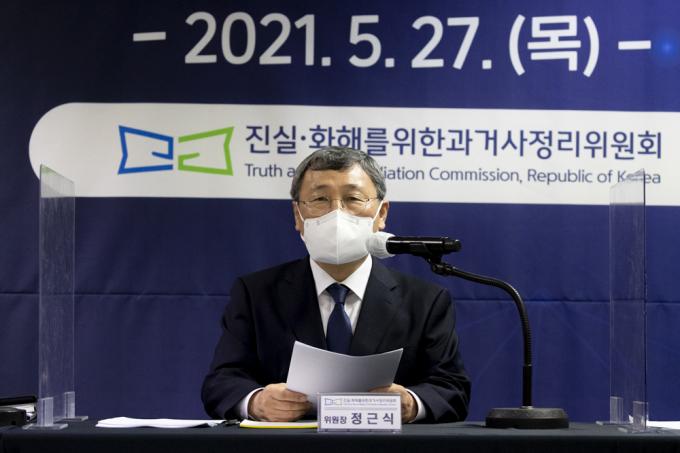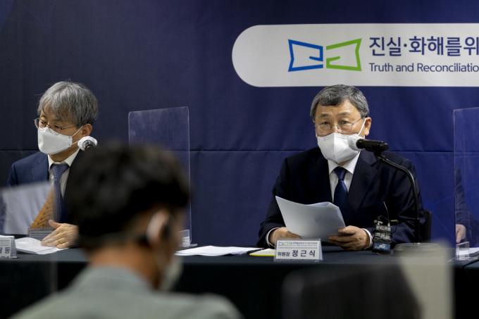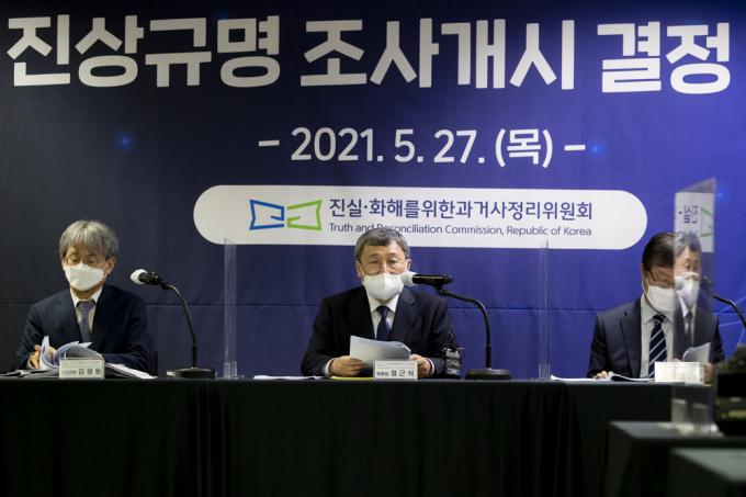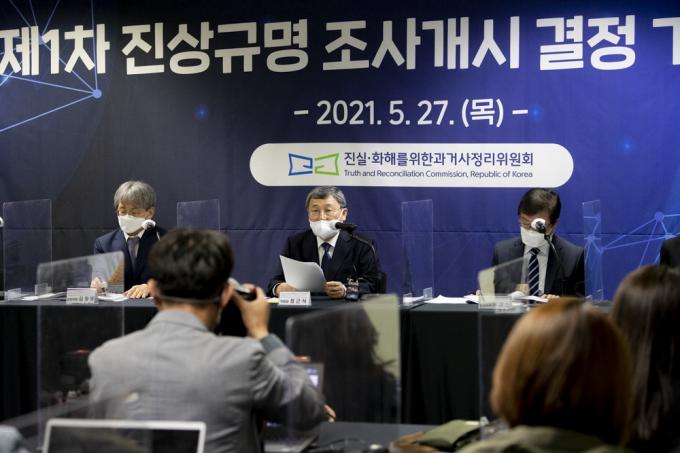 정근식 진실·화해를위한과거사정리위원장이 27일 서울시 진실·화해를위한과거사정리위원회 기자회견장에서 열린 제1차 진상규명 조사개시 결정에 관해 발표하고 있다.