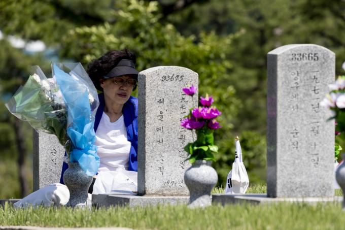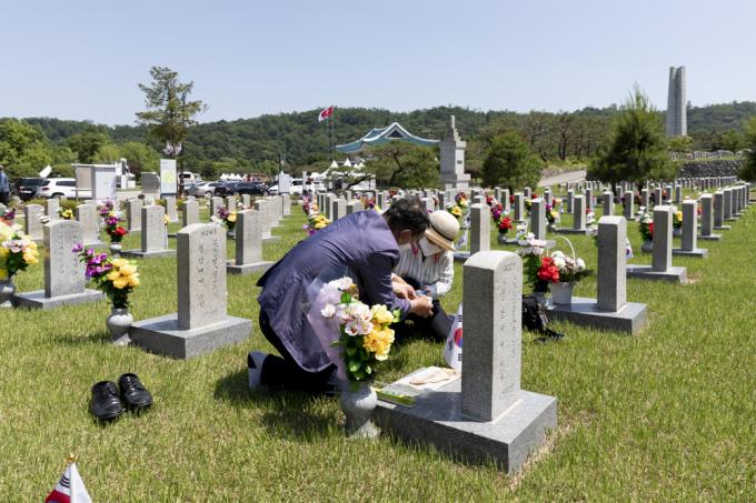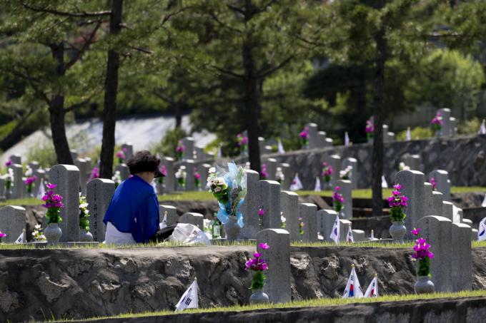 현충일을 이틀 앞둔 4일 서울 동작구 국립서울현충원. 내리쬐는 햇살 아래 묘비 앞에 앉은 권계자(71세) 씨가 눈물짓고 있다. 권 씨는 "1971년 순직한 큰 오빠와 며칠 전 49재를 지낸 둘째 오빠 생각에 마음이 아려온다"며 "그래도 이렇게 묘비 앞에 앉아 있다 가면 한결 마음이 편해진다"고 했다.