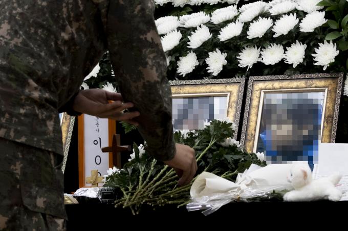 7일 오후 경기 성남 국군수도병원에 마련된 고 이모 중사의 분향소. 이 중사는 지난 3월 선임 부사관에게 성추행을 당했다며 신고한 뒤 두 달여 만인 지난달 22일 숨진 채 발견됐다.