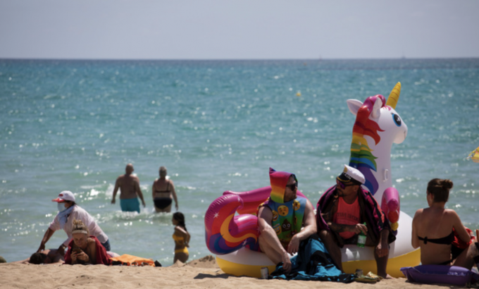 스페인 정부가 코로나19 백신 접종을 완료한 전 세계 관광객들에게 국경을 개방한 7일(현지시간) 스페인 마요르카에 있는 발레아릭 아일랜드 해변에서 관광객들이 일광욕을 즐기고 있다. [AP 뉴시스]