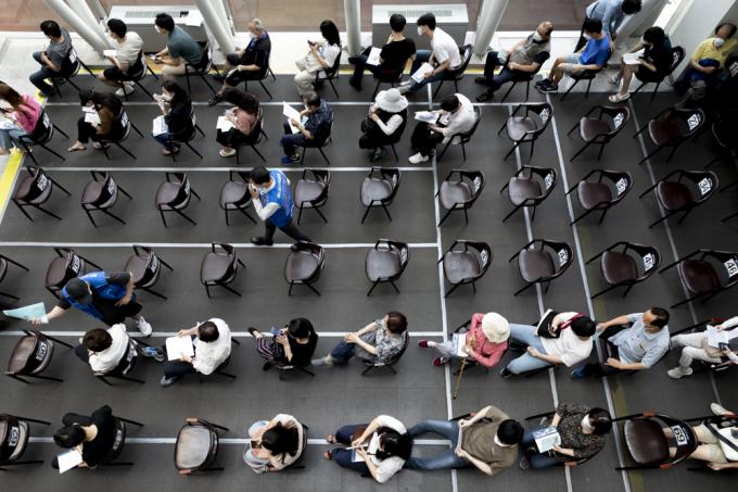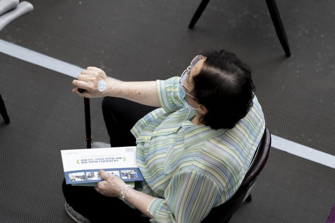 24일 서울 성북구 예방접종센터에서 한 시민이 화이자 백신 접종 후 이상반응 확인을 위해 대기하고 있다.