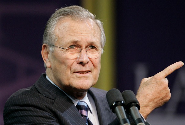 럼즈펠드는 경험 많은 관료이자 현대 미군의 선지자로 명성을 얻었었지만, 동시에 전쟁광, 매파 등의 오명도 받았다.