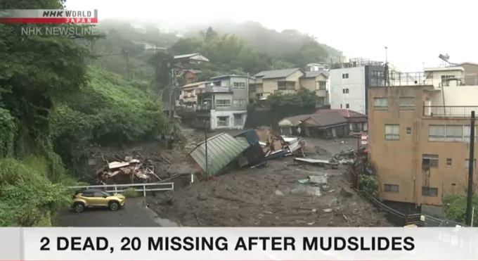 이날 NHK, 교도통신 등에 따르면 전날 오전 10시 30분쯤 시즈오카현 아타미시 이즈산 지역에서 기록적 폭우로 인해 발생한 산사태 피해지의 가옥 등에서 10명이 구조됐다.
