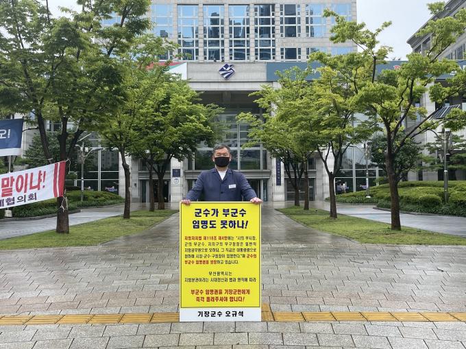 이를 들어 오 군수는 지난 2018년 7월부터 최근까지 부군수 임명권 반환을 위한 1인 시위를 부산시청과 국회 정문 앞에서 68회나 진행했다.