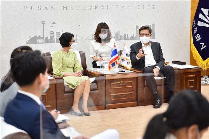 박형준 시장은 취임 축하를 위해 시청을 방문한 주한태국대사에 감사 인사를 전한 뒤 "아세안 최대 제조업 국가인 태국과의 활발한 경제 교류를 통해 양국이 함께 성장하기를 기대한다"고 강조했다.