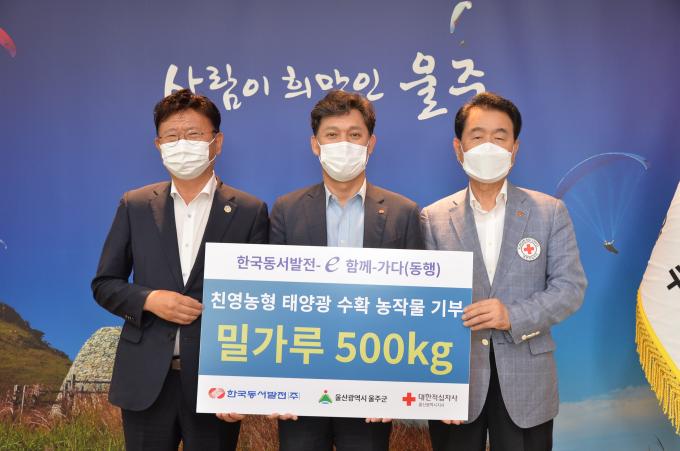 울산에 본사를 둔 한국동서발전은 영남대학교와 공동으로 추진한 '친영농형 태양광 실증단지'에서 수확한 밀 500㎏을 취약계층 지원용으로 울주군에 전달했다고 9일 밝혔다.