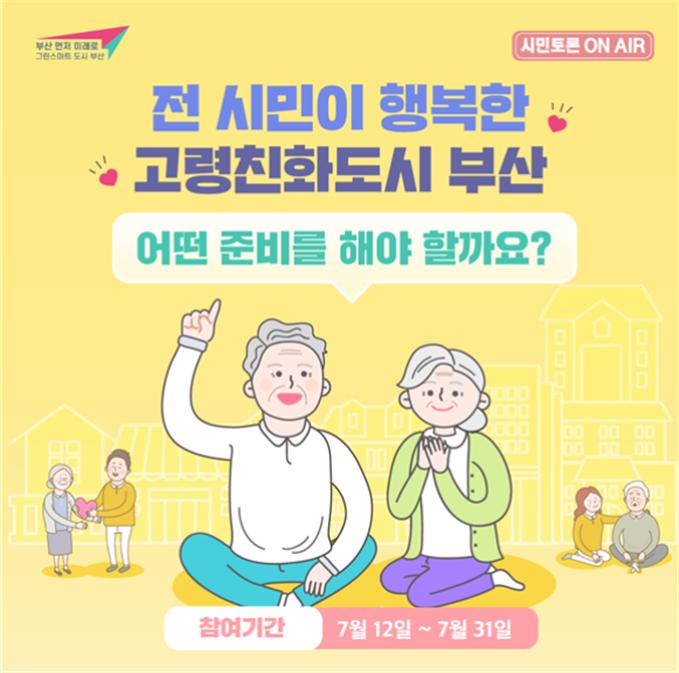 이번 토론은 '전 시민이 행복한 고령친화도시 부산, 어떤 준비를 해야 할까요?'라는 주제로 노인뿐만 아니라 모든 세대가 공감하는 초고령사회 대응 방안을 마련하기 위해 기획됐다.