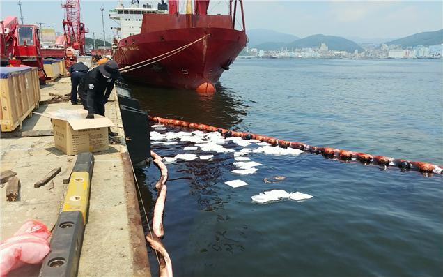 A 호 선장으로부터 신고를 받고 출동한 해경은 방제정, 경비함정, 방제업체를 동원해 사고 해역에 오일펜스 200m를 설치, 방제작업을 벌였다.