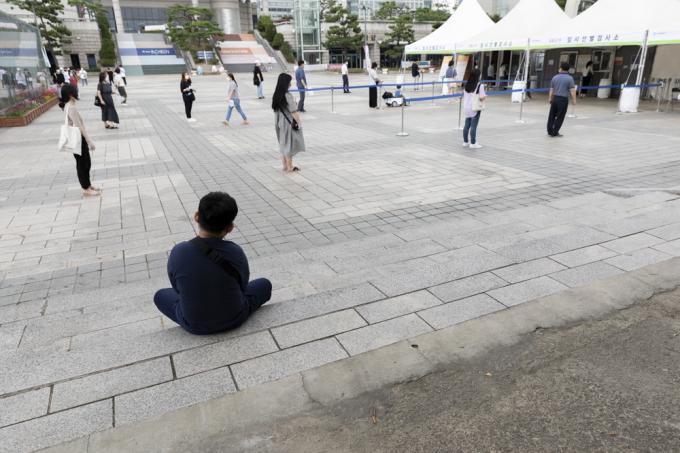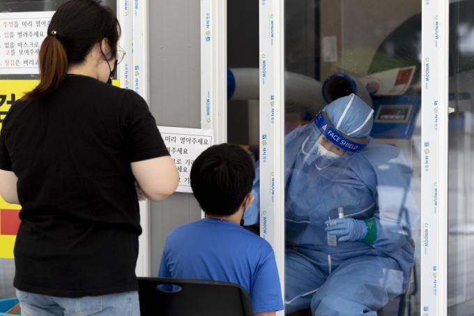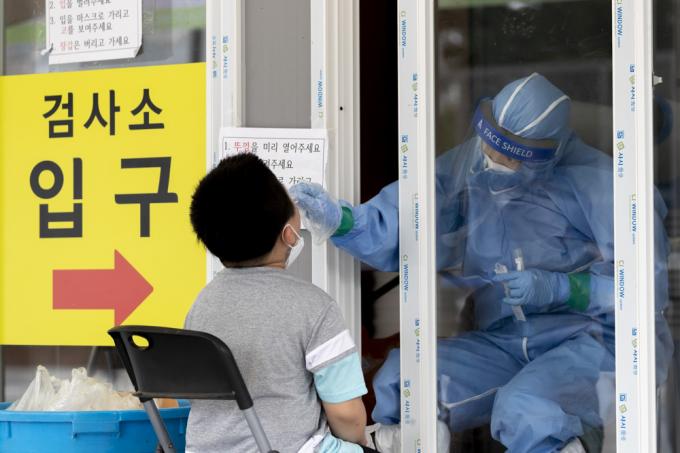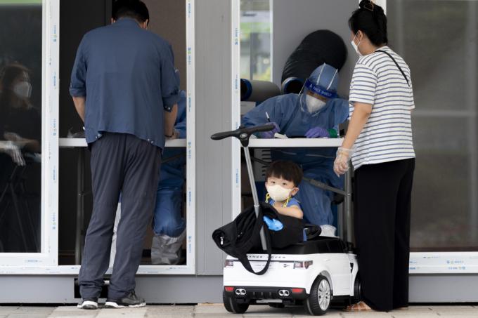 요즘 아이들은 부모와 놀이동산에서 줄 서는 것보다 선별진료소에서 줄 서는 것이 익숙할 듯하다. 그런 아이들을 바라보는 어른들의 눈빛엔 근심이 가득했다. 수도권 거리두기 4단계가 시행 중인 13일 인천 남동구 구월동 코로나19 선별진료소 풍경.