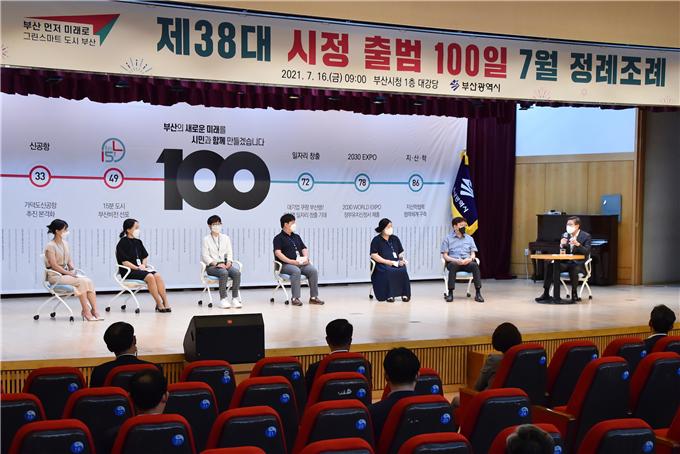 박 시장은 "위기의 상황에서 취임했으나, 일선에서 코로나 방역과 지역 경제 활력에 밤낮으로 뛰는 직원들의 수고와 노력에 든든하다"며 "부산세계박람회 유치 및 부산경제 재도약을 위해 최선을 다하겠다"고 다짐했다.