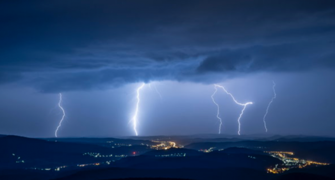 14일 저녁(현지시간) 헝가리 노그라드주 주도 셜고터리안 상공에 번개가 치고 있다. [AP 뉴시스]