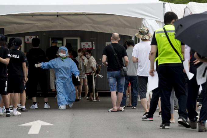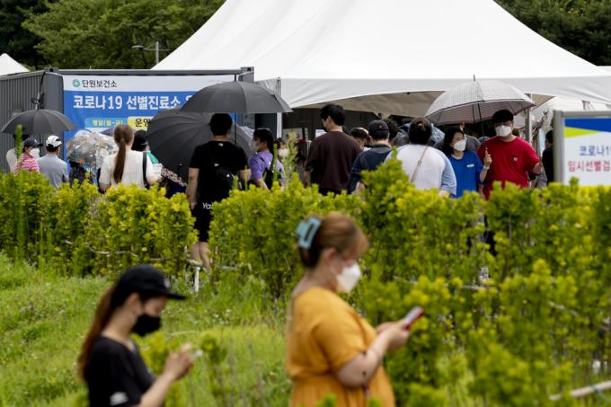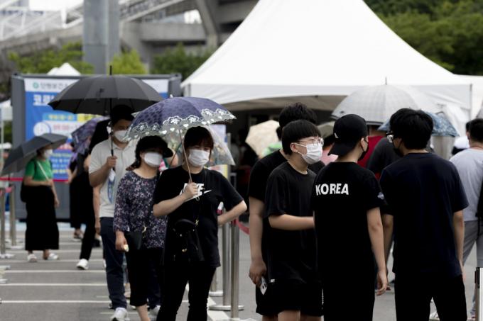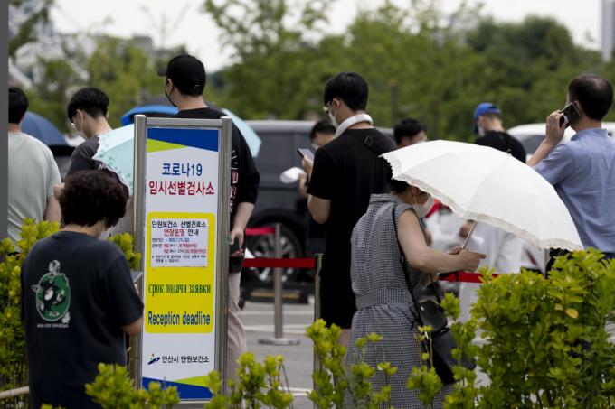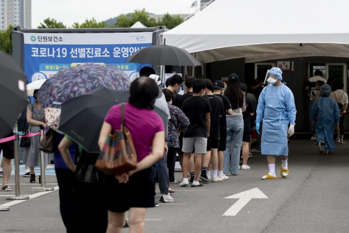 19일 오전 경기 안산 단원보건소 내 코로나19 선별진료소에서 검사를 받으려는 시민들이 줄지어 서 있다. 코로나19 신규 확진자는 0시 기준 1252명으로 전일 대비 202명 감소했지만 일요일에 발생한 확진자 기준으로는 역대 최다 수치다.