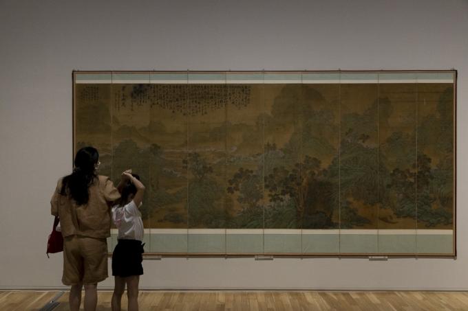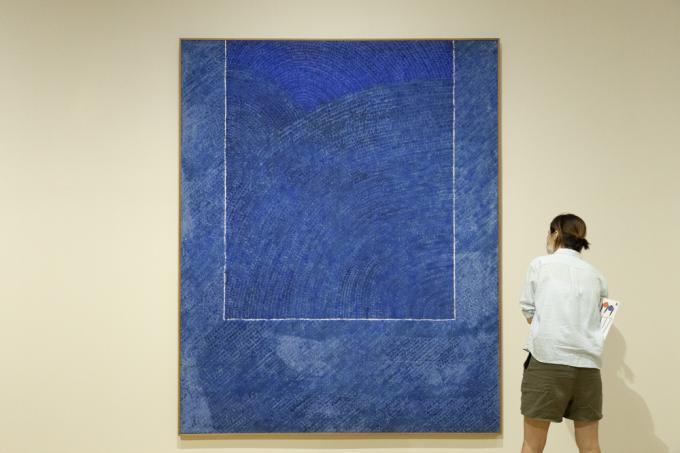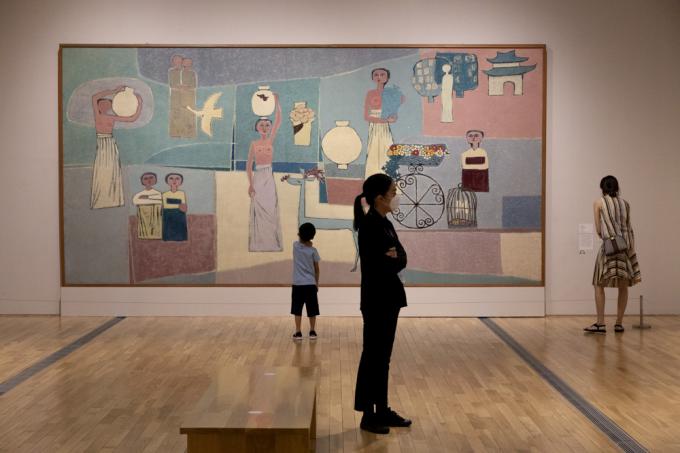 'MMCA 이건희 컬렉션 특별전:한국미술명작'이 21일 서울 종로구 국립현대미술관 서울관에서 개막했다. 시민들이 김환기(1913-1974)의 '여인들과 항아리'(캔버스에 유채)를 관람하고 있다.