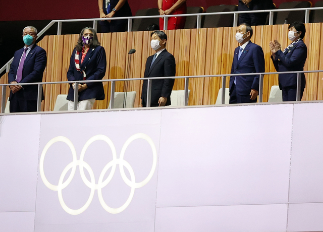 나루히토 일왕은 지난 23일 밤 도쿄도 신주쿠구 올림픽 스타디움에서 열린 올림픽 개회식에 참석해 "나는 이곳에서 제32회 근대 올림피아드를 기념하는 도쿄 대회의 개회를 선언한다"고 말했다.