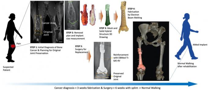 공동 연구팀은 맞춤형 3D 프린팅 임플란트 설계와 제조 기술로 이러한 문제를 해결했다. 환자의 다리 뼈 중 암이 침범된 부분만 최소 절제하고, 무릎 관절은 그대로 보존해 보행 기능을 최대한 회복하도록 돕는 3D 프린팅 인공 뼈를 설계하고 만들었다. 이를 위해 의학적, 기계적, 재료 역학적 분석 등 다양한 분석을 실시했다.