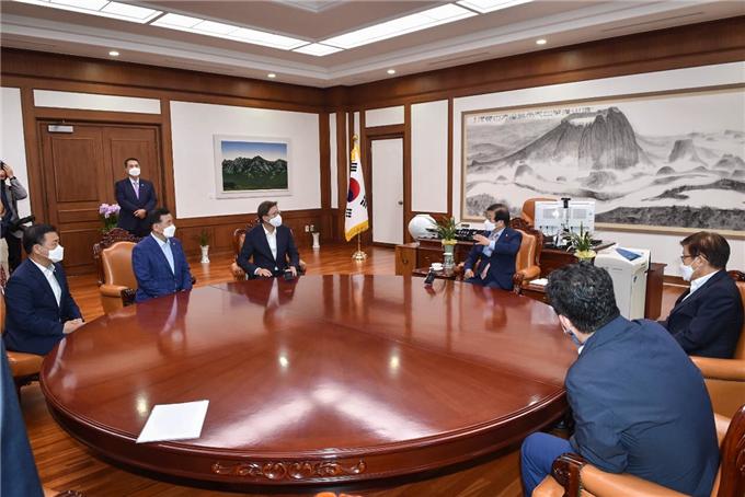 박 시장은 "2022년도 정부예산 사업비를 꼭 반영해 엑스포 유치에 차질 없이 추진될 수 있도록 도와달라"고 요청했다. 이에 대해 박 의장은 국회 차원의 적극적인 협조를 약속했다.
