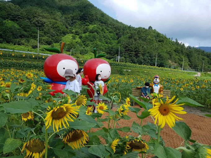 경남 거창군이 올해 초 신원면 추모공원 앞 농지 1만여 ㎡에 조성한 들녁에는 1일 해바라기 10만 송이가 장관을 연출하고 있다.