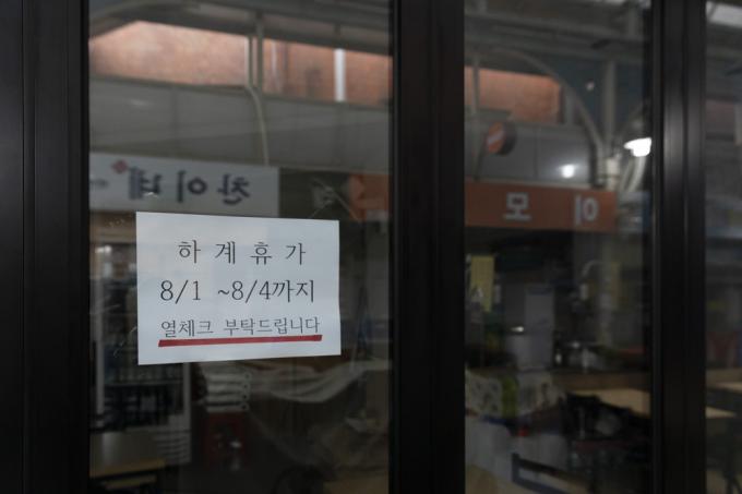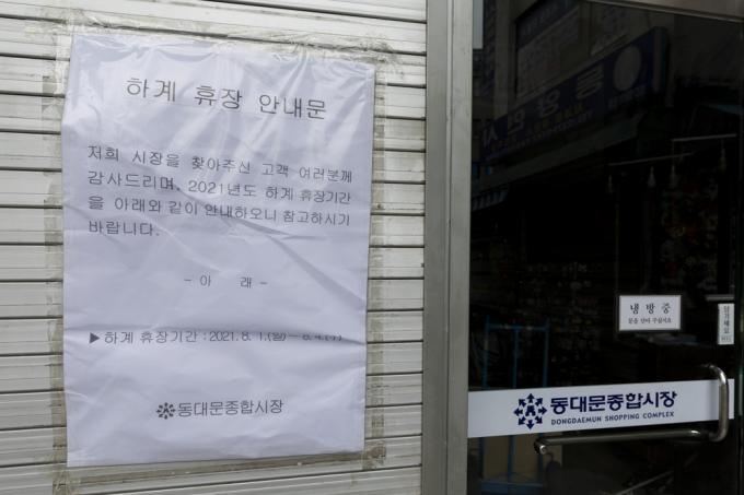 본격적인 휴가철이 시작된 2일 서울 종로구 동대문종합시장 입구에 '하계 휴장 안내문'이 붙어 있다.