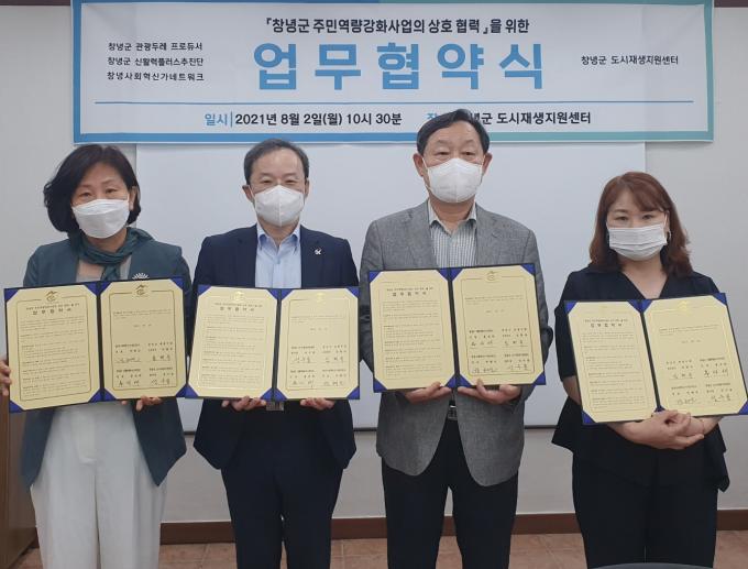 협약에는 성수용 도시재생 지원센터장을 비롯해 창녕군 관광두레 임현숙 프로듀서, 홍성태 창녕군 신활력 플러스 추진단장, 박해진 창녕 사회혁신네트워크 대표 등이 참여했다.