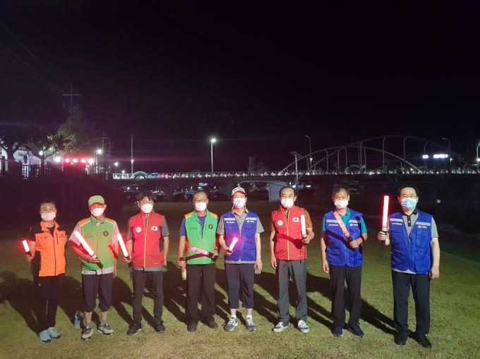 거창군은 7월 31일 주말 저녁에는 거창읍 여성소방대(대장 이도희), 자유총연맹(회장 양호진), 자율방재단(단장 이현우) 3개 단체가 구인모 거창군수와 함께 행정명령에 따른 음주·취사 금지와 마스크 착용 의무화에 대해 계도활동을 함께 실시했다.