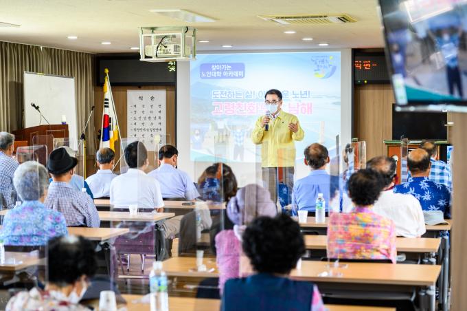 3일 남해군에 따르면 지난 7월30일 진행된 이날 강의는 사회적 거리두기 3단계 조치에 따라 설천노인대학생 50여명이 참석한 가운데 진행됐다.
