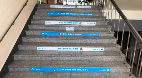 건강계단은 일상생활에서 쉽게 접할 수 있는 계단을 활용해 신체활동을 독려하면서 칼로리 소모량, 금연, 절주, 비만, 구강 등 유익한 건강생활 실천정보를 홍보하는 역할을 하고 있다.