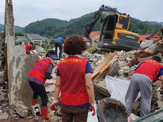 경남 함양군 안의면의 각종 단체들이 지난 1일 안의면 교북리에서 발생한 주택화재 농가를 찾아 무더운 날씨 속 복구 작업에 구슬땀을 흘렸다.