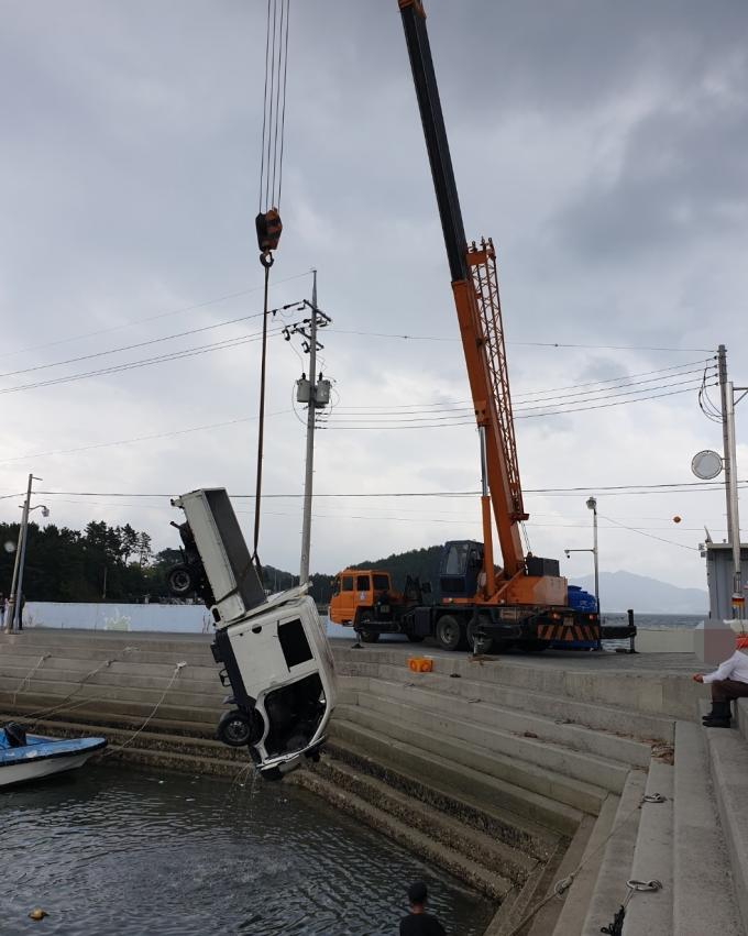 통영해경은 A 씨가 화물차를 몰며 유턴을 하다가 운전 미숙으로 추락한 것으로 보고, 사건을 마무리했다.