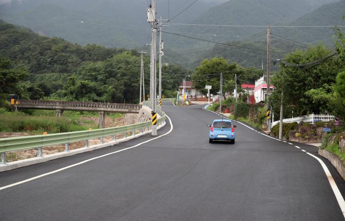 이번 확·포장으로 도로폭을 기존 약 3m에서 6~8m로 넓혀 SUV 등 대형차량의 교행을 수월하게 했다. 특히 기존 난간이 낮고 약해 불안했던 것을 안전을 확보할 수 있도록 재가설했다.