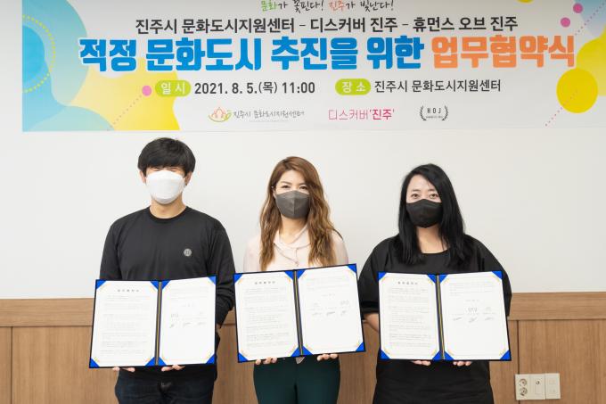 이날 협약식에는 진주시 문화도시지원센터 이수경 사무국장, 휴먼스 오브 진주 김기종 대표, 디스커버 진주 심다온 대표 등이 참석했다.