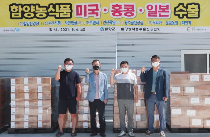 경남 함양군은 5, 6일 이틀 동안 농업회사법인 함양산양삼에서 죽염·액상차·산양삼 제품 등 함양농식품 27만 달러 상당을 미국·홍콩·일본으로 수출하는 선적 행사를 열었다.