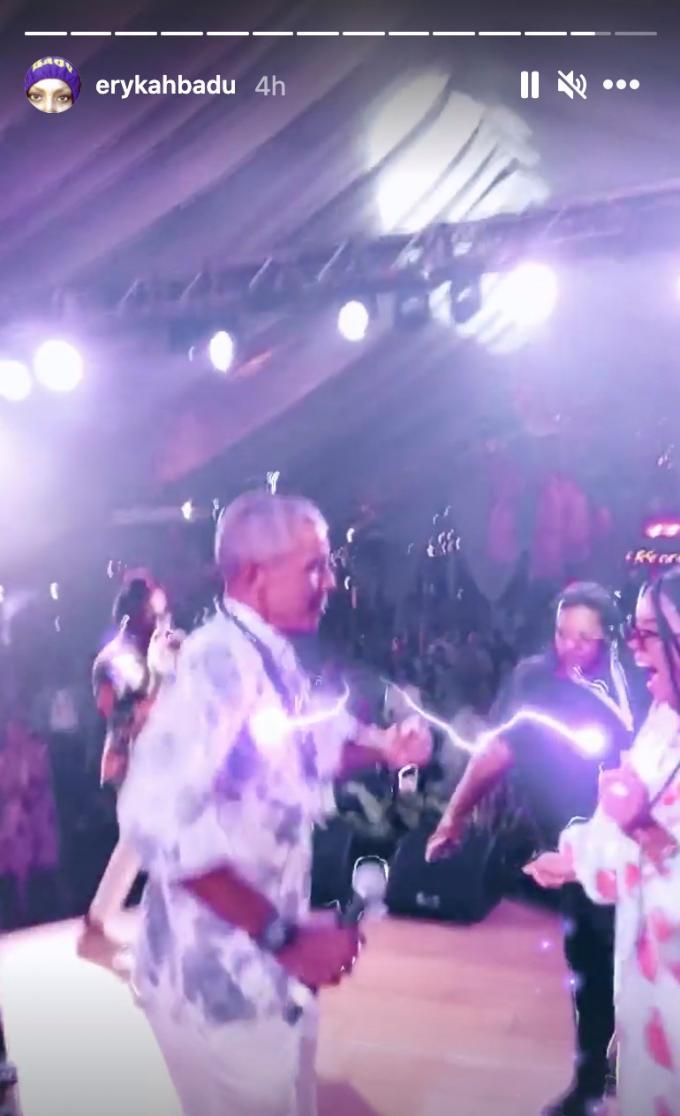 파티에 참석한 가수 에리카 바두는 오바마 전 대통령이 마스크를 쓰지 않은 채 춤추는 영상을 올리기도 했다.
