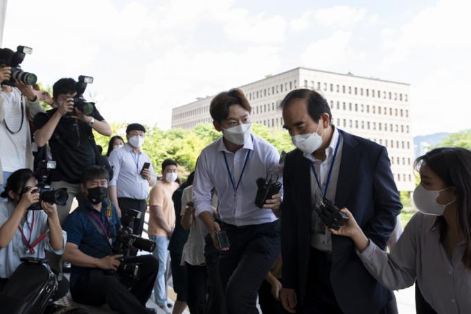 윤강열 서울고등법원 부장판사가 9일 오후 8·15 광복절 가석방심사위원회에 참석하기 위해 경기 과천 정부과천청사 법무부로 들어서고 있다.