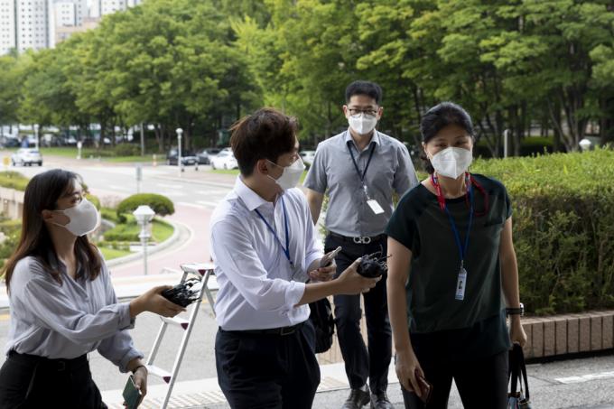 홍승희 원광대 법학전문대학원 교수가 9일 오후 8·15 광복절 가석방심사위원회에 참석하기 위해 경기 과천 정부과천청사 법무부로 들어서고 있다.