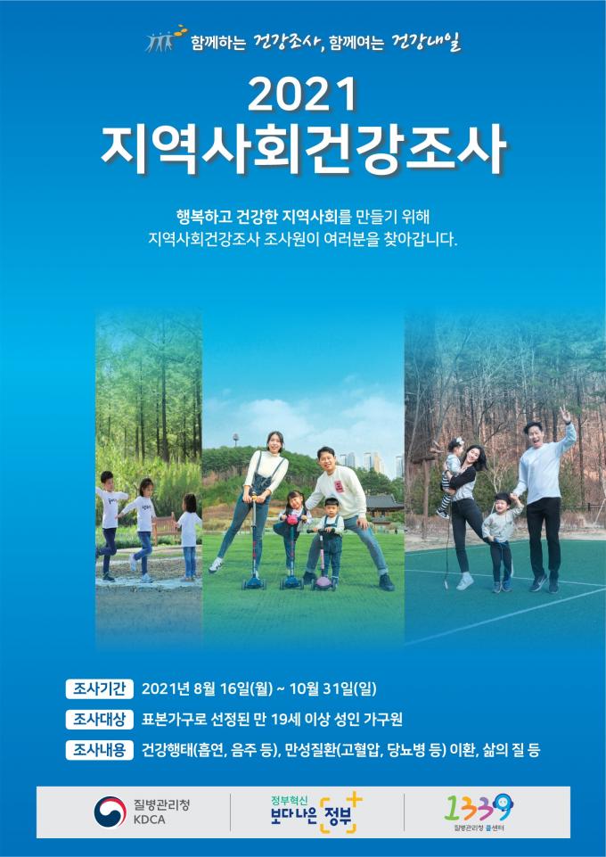 '지역사회건강조사'는 지역특성에 맞는 보건사업을 계획하기 위해 지역주민의 건강수준과 건강행태를 파악하고자 2008년부터 매년 질병관리청과 17개 시·도의 255개 보건소가 공동으로 수행하는 국가승인 통계조사다.