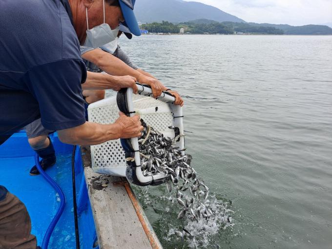 이날 방류한 감성돔 종자는 지난 2월 어미로부터 수정란을 받아 6개월여 키운 전장 5㎝ 이상으로, 자연 생태계에서 생존율이 높아 하동 연안의 어족자원 회복에 기여할 것으로 보인다.