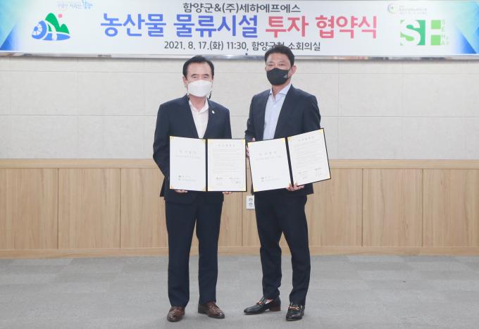 17일 함양군에 따르면 수동면에 위치한 함양일반산업단지 내에 투자금액 410억원 규모의 농산물 물류기업을 유치하고, 이날 투자협약을 체결했다. ㈜세하에프에스는 경기도에서 CJ, 오뚜기 등 대기업과 함께 식품유통, 농축산물 보관업을 하는 세하로직스의 자회사다.