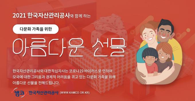 지난해에 이어 두 번째인 이번 행사에서 캠코는 저소득 다문화 160여 가족을 선정, 명절용품 등 구입을 위한 온누리 상품권(30만 원)과 코로나19 등으로 만나기 어려운 부모님에게 보낼 선물상자(20만 원)를 지원한다.