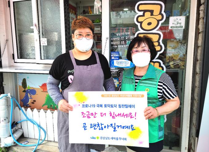 합천군 새마을부녀회는 이와 별도로 읍지역 내 3개 업소를 차례로 방문해 비누 꽃바구니와 여름 이불을 전달하며 희망과 긍정의 에너지를 전달하는 '토닥토닥 칭찬릴레이'를 벌였다.