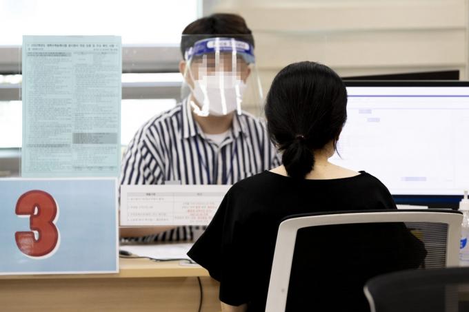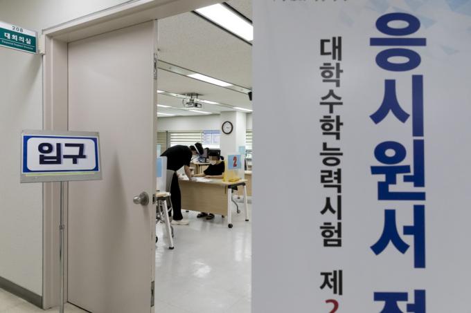2022학년도 대학수학능력시험 응시원서 접수가 시작된 19일 오후 서울 성동광진교육지원청에서 한 수험생이 원서를 내고 있다. 접수 기간은 내달 3일까지다.