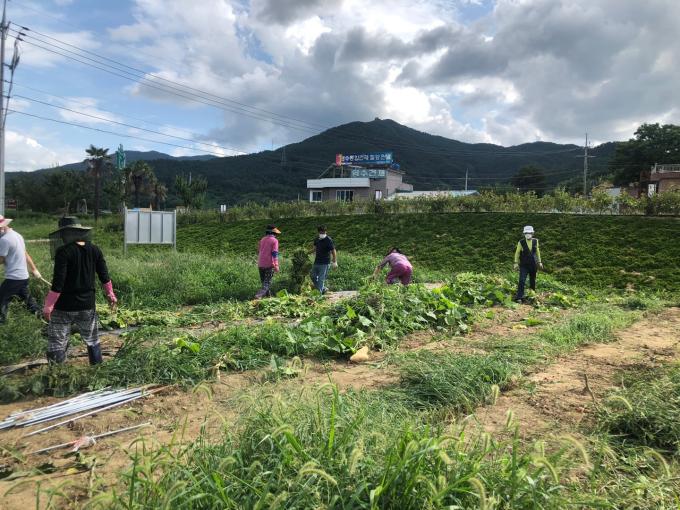 지난 18일 열린 작업에는 주말농장을 분양받은 고현면 귀농·귀촌 10여 가구와 지역사회보장협의체 위원 8명이 참여, 수확이 끝난 농작물을 제거하고 비닐을 제거하느라 구슬땀을 흘렸다.