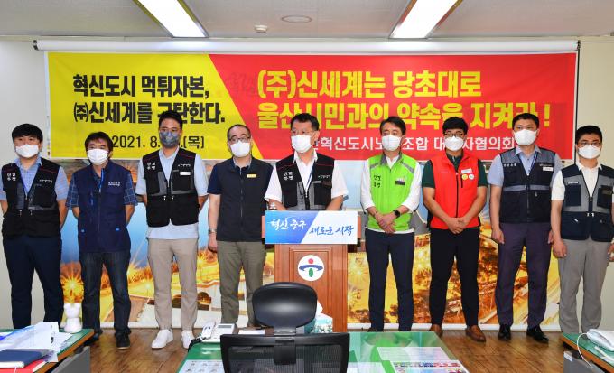 이번 달 들어서도 지난 3일 울산시 건축사회가 중구청에서 기자회견을 갖고 신세계그룹에 계획 철회를 요구했고, 울산혁신도시노조 대표자협의회는 19일 기자회견에서 신세계에 백화점 부지를 당초 매입가에 반납하라고 촉구했다.